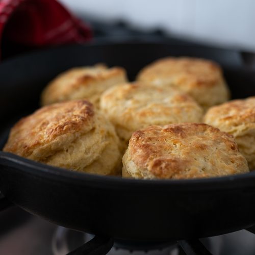 - A cast iron skillet: The only thing that I have used to make these biscuits is a 10-inch cast iron skillet. A smaller skillet would probably work, too, but I don’t have one! I do think that these biscuits could be cooked in a pie plate or something similar. Let me know if you try it!